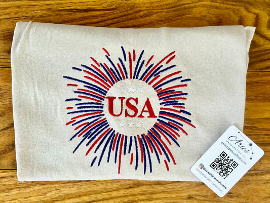 Embroidered Adult Patriotic USA Fireworks TShirt - Celebrate Independence Day July 4th