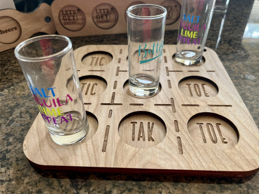 Tik tac toc drinking board red oak tray 9 holes shot glasses party shot laser cut engraved customize personalize drinking party board game