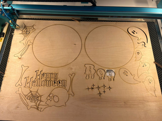 Skull And Bones Round Halloween Door Sign Laser Cut Hand Painted Black And White