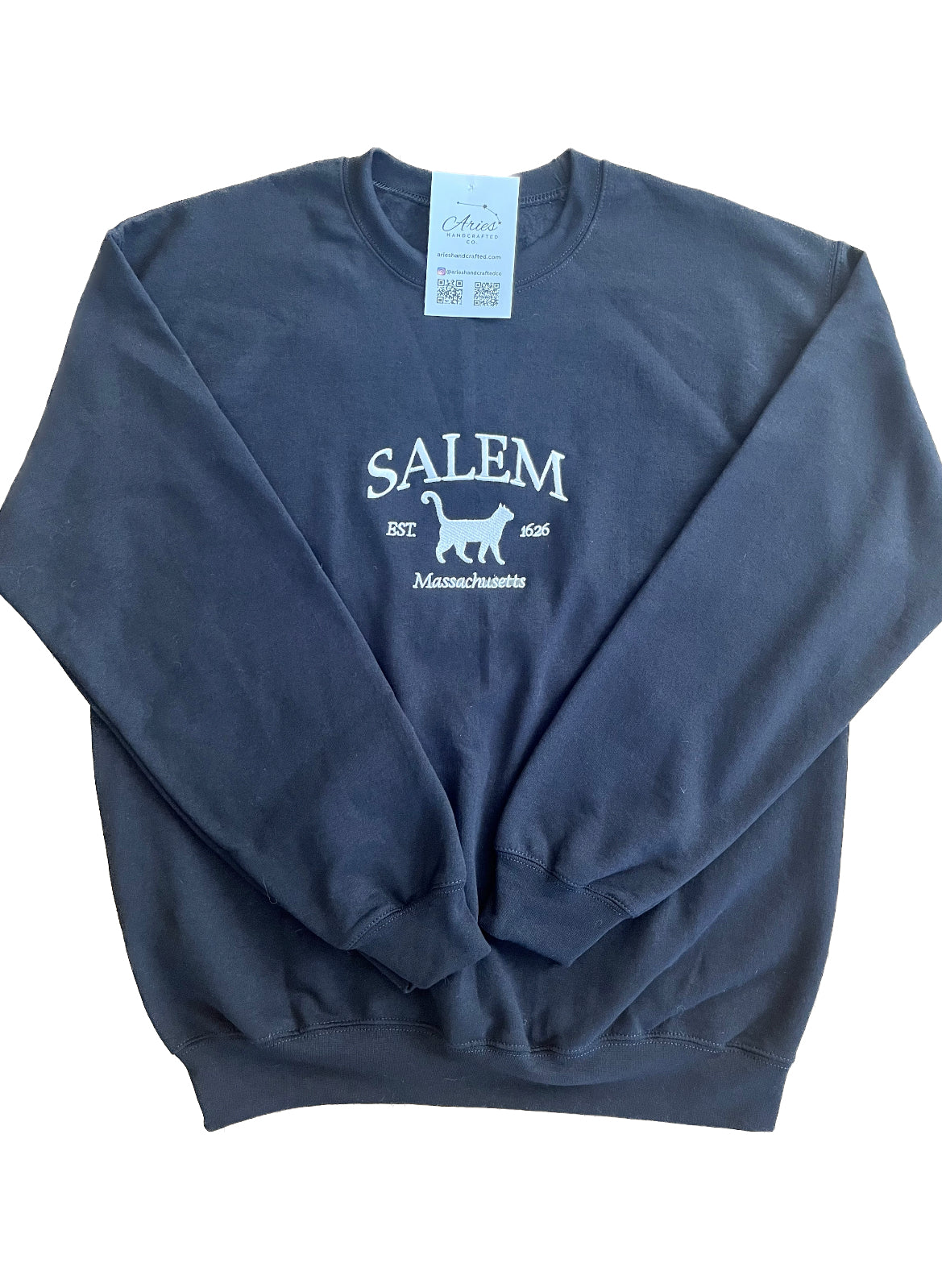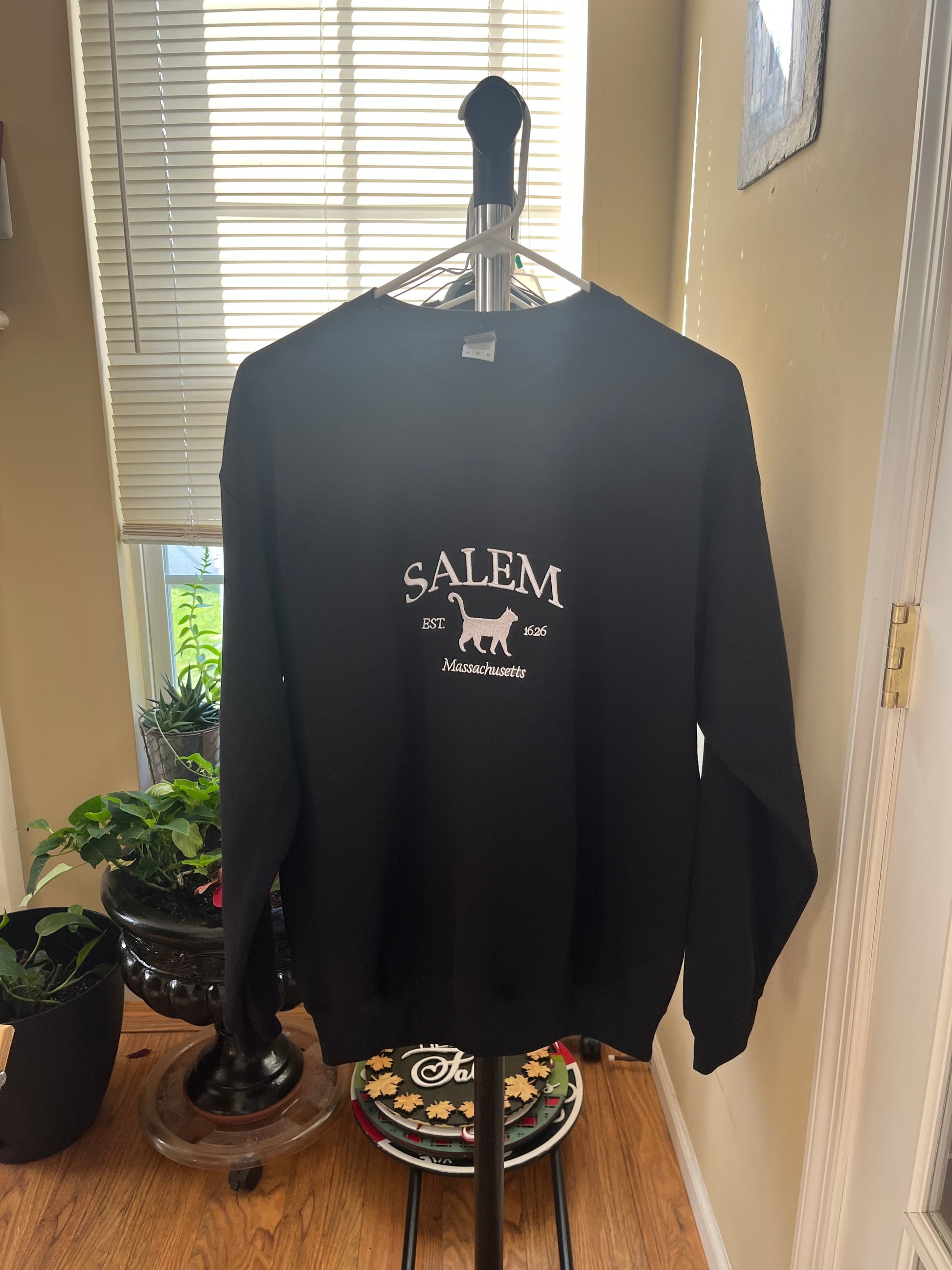 Salem Black Cat city crew sweatshirt long sleeve black cotton blend