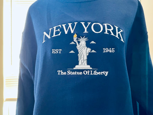 Embroidered crewneck sweatshirt New York City Statue of Liberty