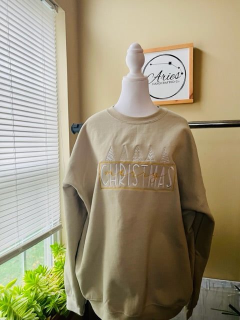 Embroidered Chirstmas long sleeve sweatshirt crew neck festive embroidery color threats